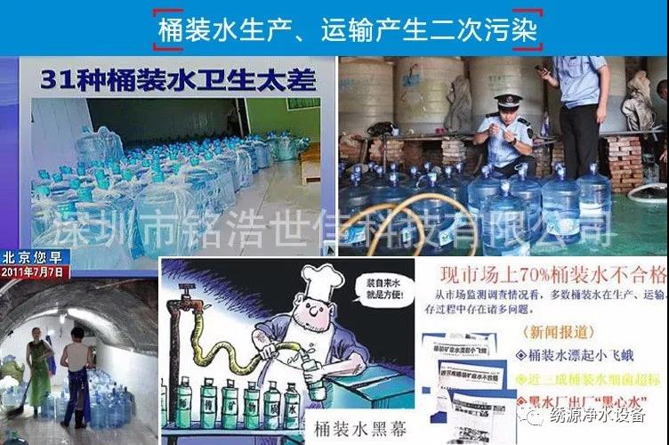 有些桶裝水說是天然礦物質(zhì)水,但經(jīng)調(diào)查發(fā)現(xiàn)水源周邊全是垃圾;有些說是礦物質(zhì)水,但發(fā)現(xiàn)竟是自來水等等。有關桶裝水的水源質(zhì)疑不斷,很難保證水質(zhì)。