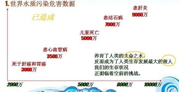 癌癥細(xì)胞最大的特征厭氧,分解過(guò)程中吸收大量的氧氣,導(dǎo)致水中的有機(jī)物超標(biāo),人體環(huán)境缺氧,癌癥細(xì)胞就得以生存和繁殖因此水水污染也是引起癌癥疾病高發(fā)的重要原因之一。